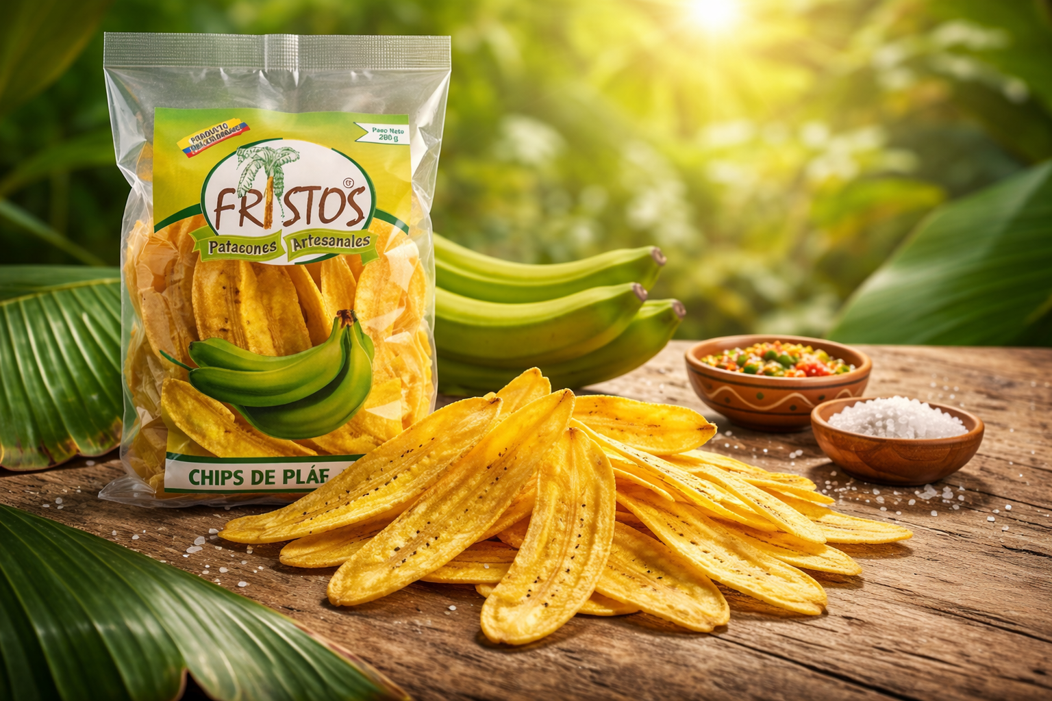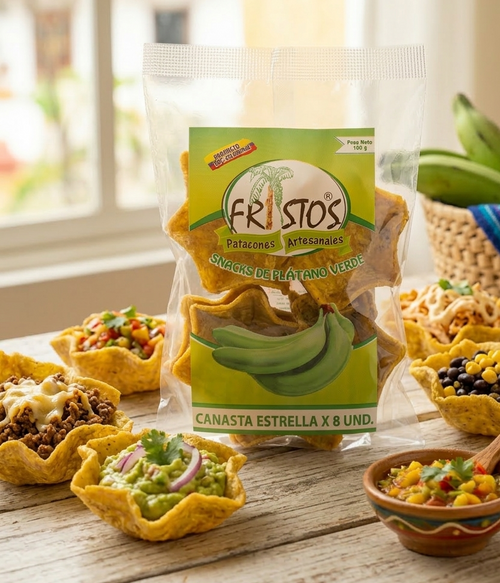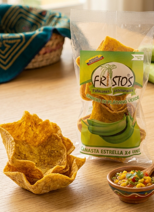 Patacones artesanales elaborados con plátano verde 100% natural. Para hogares, restaurantes y negocios de toda Colombia.